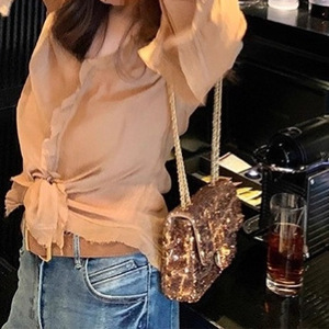 2025法式夏秋法式田园风绑带收腰设计感名媛上衣女木耳边显瘦衬衫