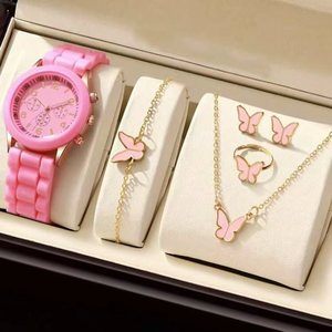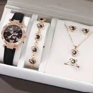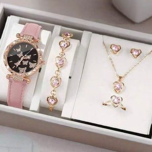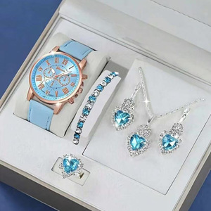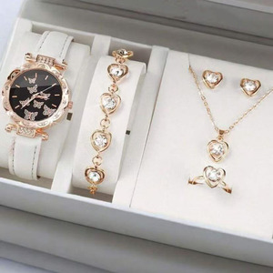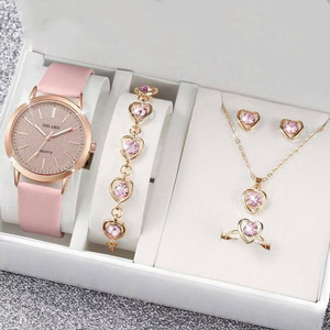 女士手表简约新款五件套圆形首饰腕表套装女款高级感轻奢时尚女表