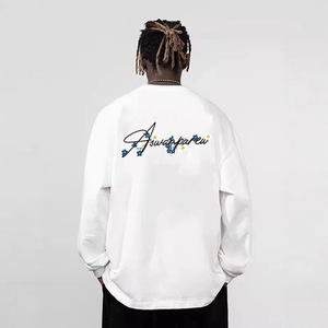 アメリカのトレンディなブランド刺繍ボトムシャツメンズ夏ハイストリートレトロデザインラウンドネックTシャツバイブルーズ長袖トップ