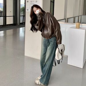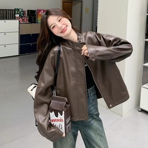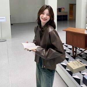 ブラウンレザージャケットレディースレザージャケット2025新作香港風ショートバイクジャケット今年人気のアメリカンレトロ