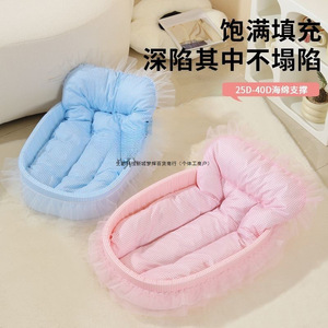 ピンクのチェック柄のかわいいペットの巣 [巣底+マット+レース付き]