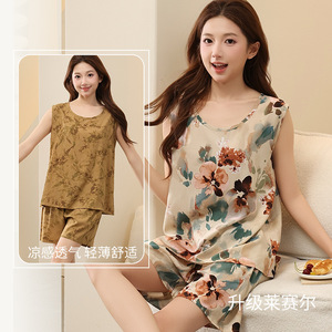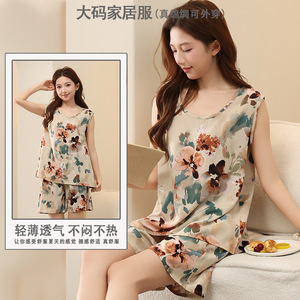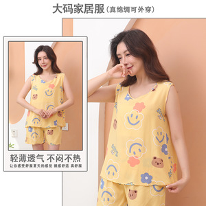 女の子の甘い大きいサイズのハイエンド通気性大人、高齢者、女の子プラス脂肪拡大パンツリヨセル 2025 新しい綿シルクパジャマセット