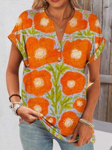 ヨーロッパとアメリカの夏独立系ステーションアマゾンクロスボーダーレディース3DプリントレディースファッションVネック半袖トップTシャツ