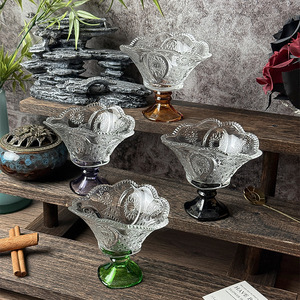 [卸売] 家庭用エンボスアイスクリームカップ、ガラスヨーグルトカップ、高級デザートカップ、ミルクシェイクカップ、ジュースカップ