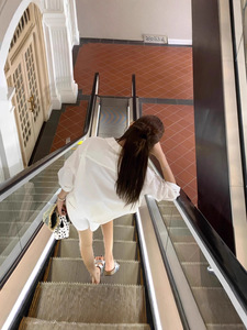 会凹造型的白衬衫秋季新款休闲百搭白色休闲翻领泡泡袖收腰衬衣