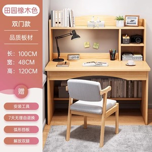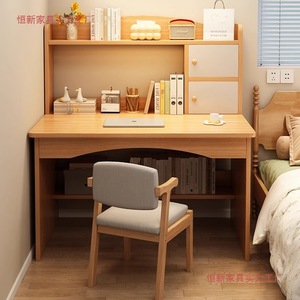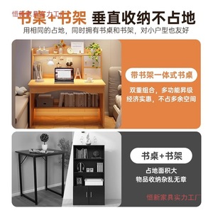 书桌学生家用学习写字桌卧室电脑桌台式初高中生书架书柜一体桌子