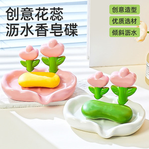 花朵肥皂盒免打孔香皂盒ins高颜值不积水塑料皂盒出口外贸内销品