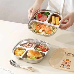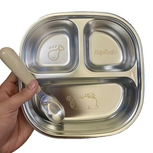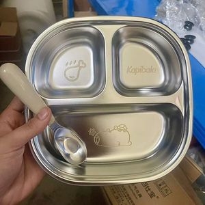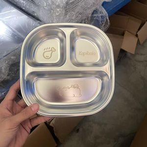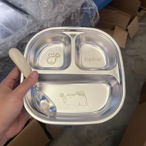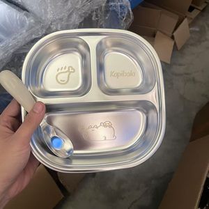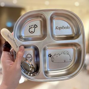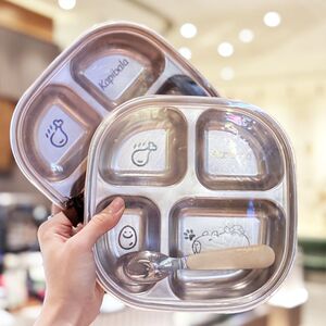 不锈钢儿童餐盘宝宝吃饭卡通盘家用学生便携分格便当盒直发工厂