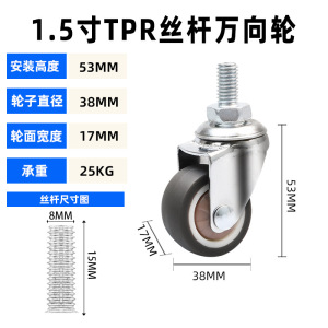 丝杆*08款TPR静音*1.5寸万向轮