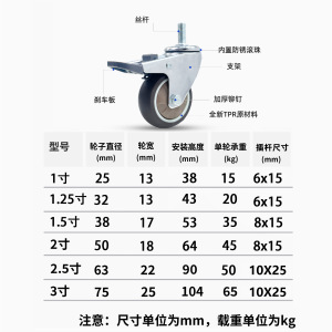 静音万向轮 1,1.5, 2寸丝杆家具滚轮TPR橡胶带刹车脚轮