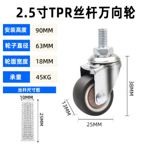 丝杆*08款TPR静音*2.5寸万向轮