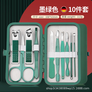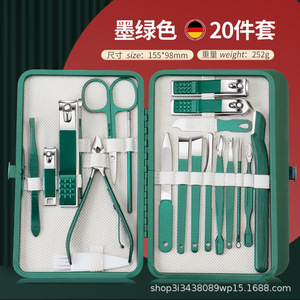 ステンレス製ネイルケアセット ダークグリーン 26点セット 携帯用 家庭用 マニキュアツール 甘皮切り