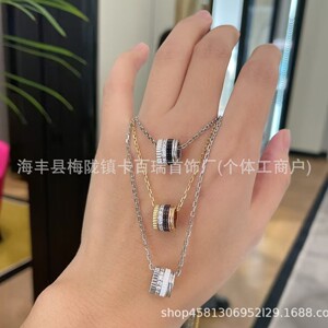 18K玫瑰金宝诗家黑白陶瓷项链女v金小蛮腰锁骨链叠戴风圆形链条