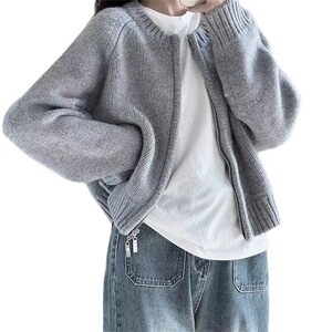 2025秋冬新款宽松灰色短款毛衣外套女装加厚拉链长袖针织开衫上衣