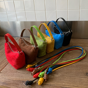 秋冬适配高级感小众彩色磨砂麂皮绒手拎小饺子包时髦洋气斜挎包女