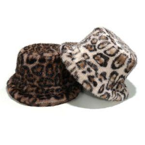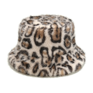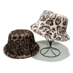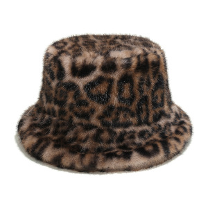 2025秋冬新款盆帽女时尚百搭毛绒保暖皮草仿貂毛豹纹渔夫帽冬帽女