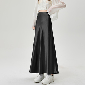 紫色醋酸缎面鱼尾半身裙女夏季2025新款中长款高腰垂感a字包臀裙