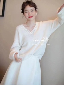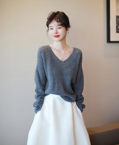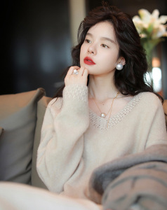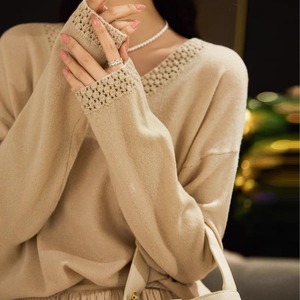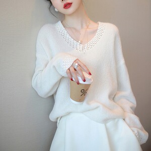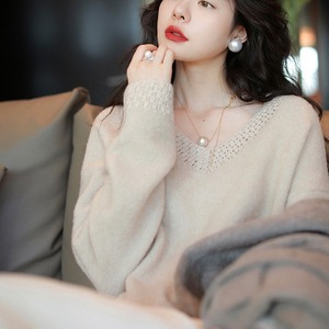 法式手工钩花桃心V领针织衫2025新款气质慵懒风宽松毛衣女装上衣