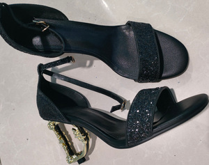 欧美字母高跟大码一字带2025年新款露脚趾牛皮黑色凉鞋女外传