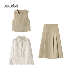 2025秋季新款通勤蝴蝶结飘带衬衫马甲上衣A字半身裙子套装C85A278