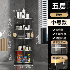 卫浴置物架304不锈钢浴室落地洗澡间家用转角架卫生间三角脸盆架