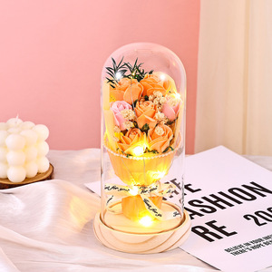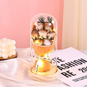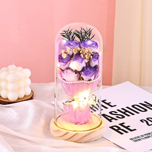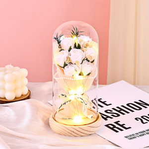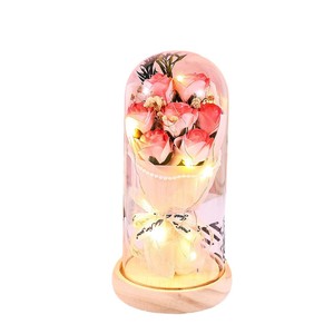 情人节礼物7朵玫瑰花实木底玻璃亚克力罩跨境摆件圣诞节创意礼品