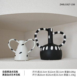 中世の黒の水玉模様の花瓶と白のポット