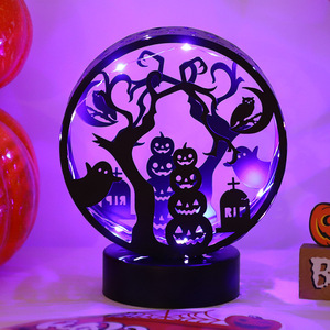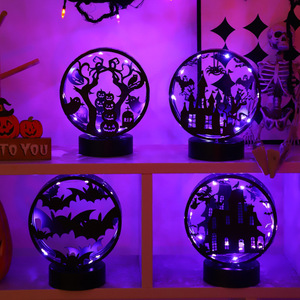 跨境新款铁艺万圣节趣味场景氛围装饰灯网红气氛布置发光投影摆台