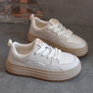 首谷2025新款厚底真皮小白鞋女款秋季小个子增高休闲百搭学生板鞋