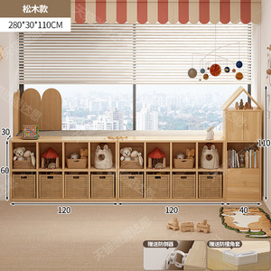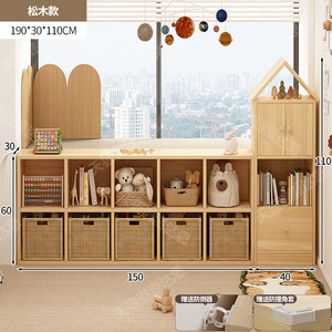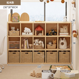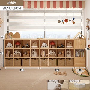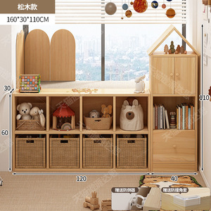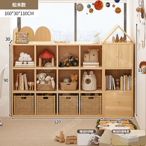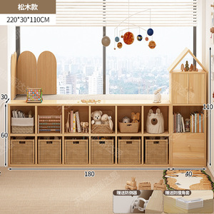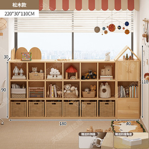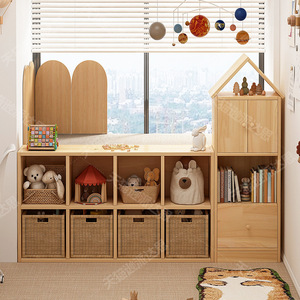 实木书柜书架置物架落地小房子收纳柜幼儿园靠墙柜子储物柜八格柜