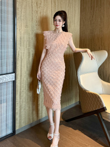 2025 新しい夏の女性のフレンチデザインウエスト痩身メッシュ立体花気質ドレス 61165
