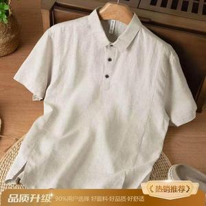 藏青色冰丝亚麻短袖POLO衫男士夏季薄款高级感老钱风宽松半袖上衣