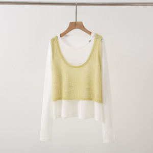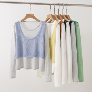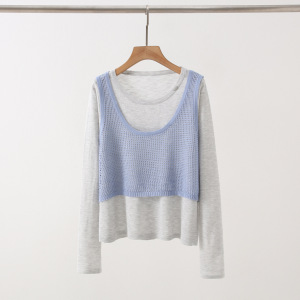 2025早秋新款设计感拼接假两件针织衫女宽松显瘦长袖上衣