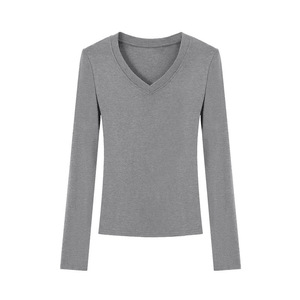 黑色正肩V领长袖T恤女春秋冬新款内搭打底衫紧身修身显瘦辣妹上衣