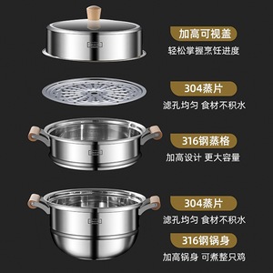 316食品级家用加厚三四层蒸鱼蒸馒头多层大容量不锈钢蒸锅蒸笼