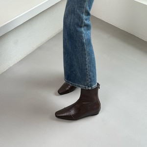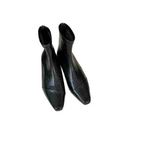 复古软皮方头小低跟短靴女新款简约气质瘦瘦靴时装马丁靴女