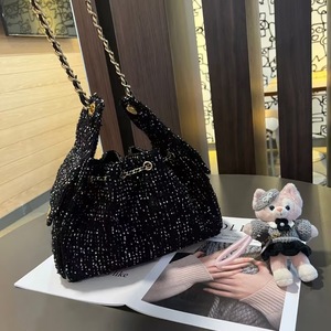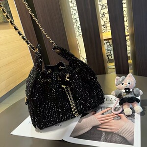 2025年秋冬新款粗话毛呢编织名媛高贵气质链条斜挎单肩包包