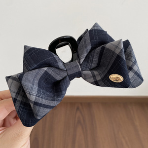 格纹蝴蝶结抓夹-藏青