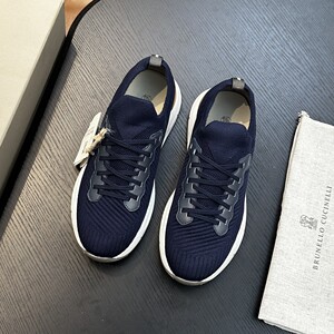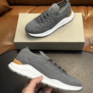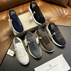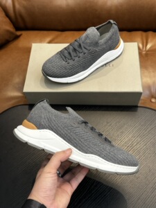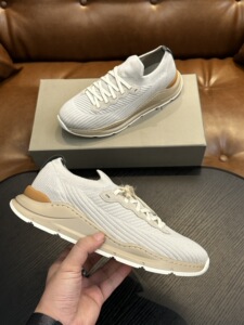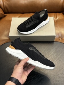 跨境BC家新款男士运动鞋半抛光小牛皮饰条百搭休闲鞋春秋针织男鞋