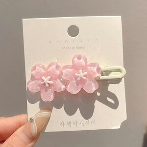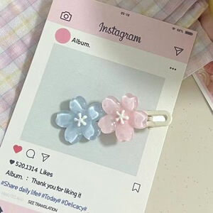果冻樱花发夹超仙粉花朵甜美气质刘海侧边波浪夹子儿童发卡头饰女