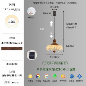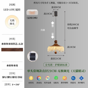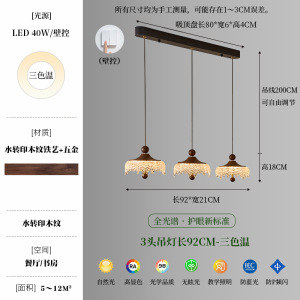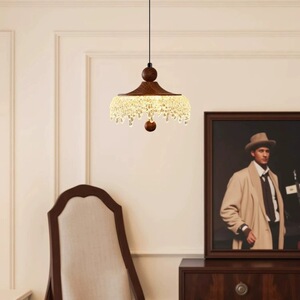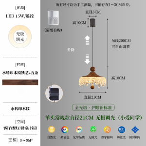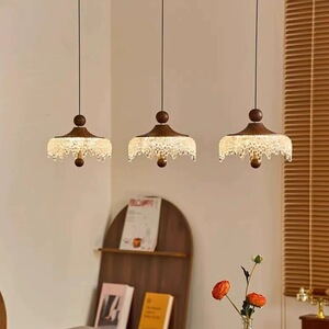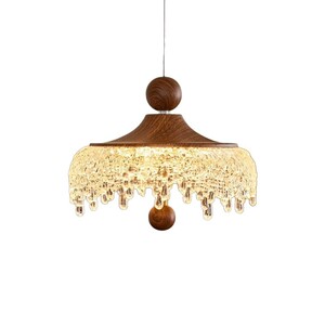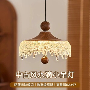 全光谱中古伸缩餐厅吊灯冰山水滴复古胡桃木色过道灯法式触摸吊灯