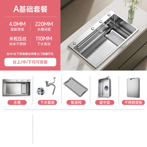 厨房水槽大单槽台下洗碗槽米粒压纹集渣单槽加厚4MM洗菜盆不锈钢