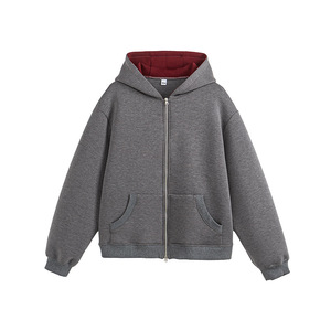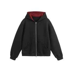 复古撞色重磅空气层拉链连帽卫衣开衫高街潮牌廓形裁剪外套男