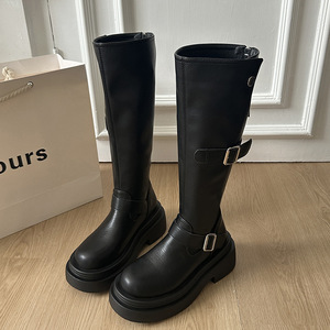 2025春秋新款高筒小个子长靴不过膝厚底靴子皮带扣长筒靴女款