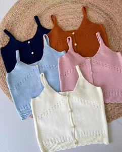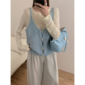 韓国のシンプルで優しいスタイルのレイヤードノースリーブサスペンダーニットベスト女性用2025初秋スタイル中空ベスト