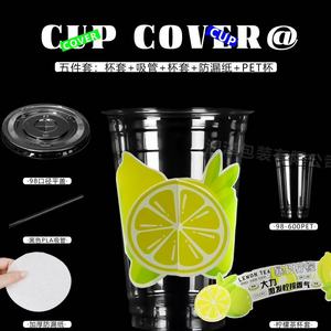 500ml杯子+盖子+黄色柠檬杯套+吸管+防漏纸
