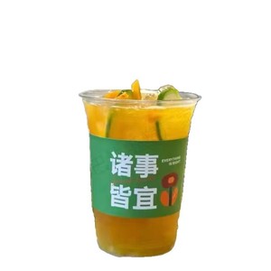 一次性柠檬茶PET冷饮杯咖啡胖胖嘟嘟杯带盖送防漏98口径奶茶杯子