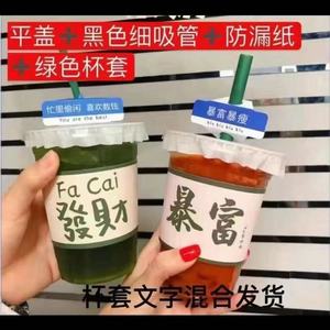 500ml杯子+盖子+绿暴富杯套+吸管+防漏纸