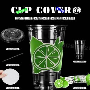 700ml杯子+盖子+绿色柠檬杯套+吸管+防漏纸