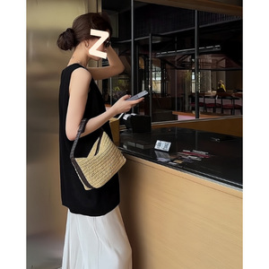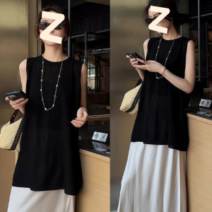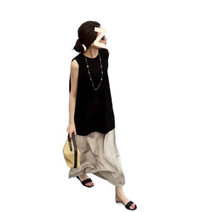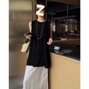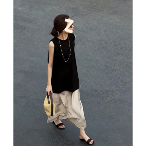韩系时尚圆领无袖背心百搭连衣裙宽松女夏季高级甜美叠穿短裙套装